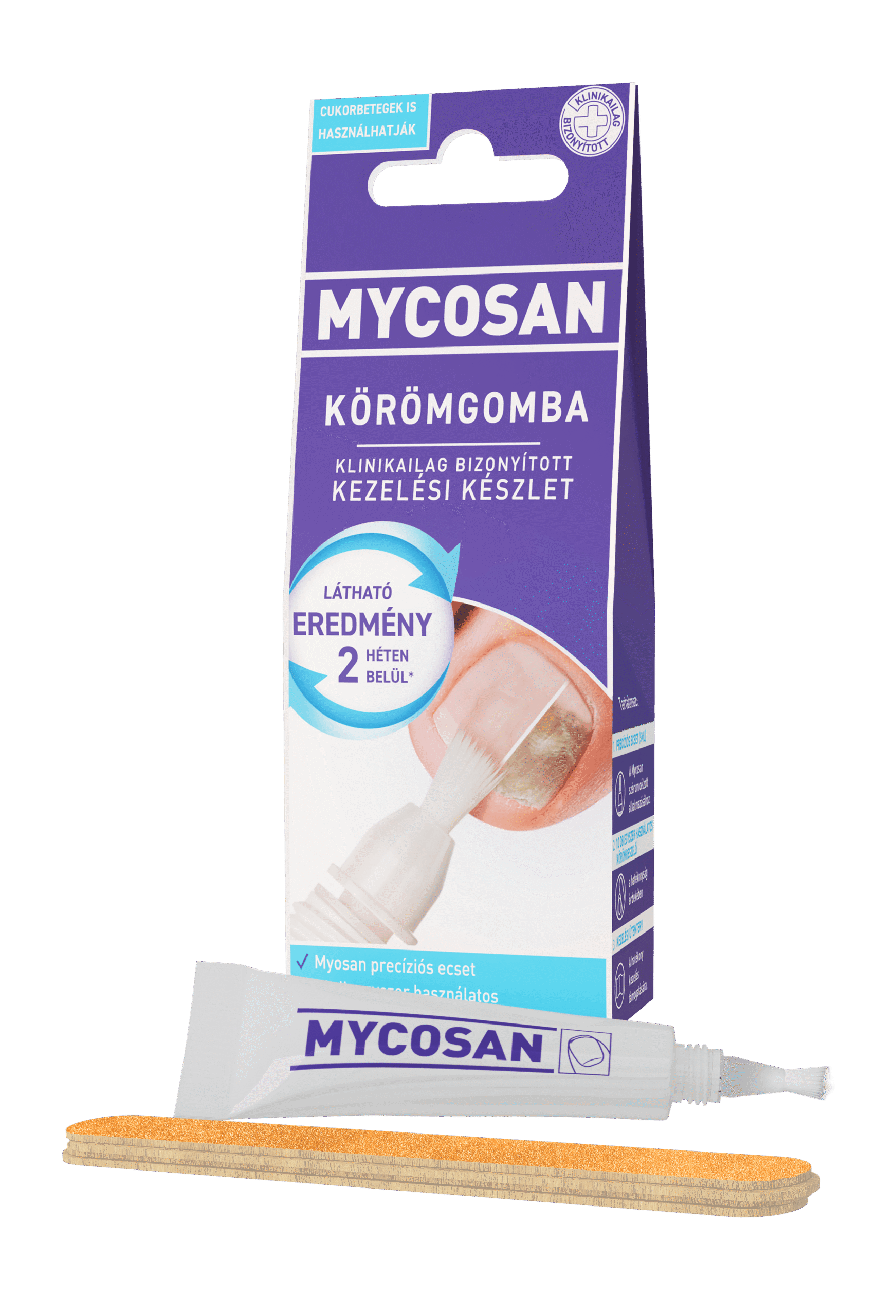 A Mycosan ecsetelő készlet kezeli és megakadályozza a körmök gombásodását. 5ml-es kiszerelés egy érintett köröm esetén, 10 ml-es kiszerelés több érintett köröm esetén.