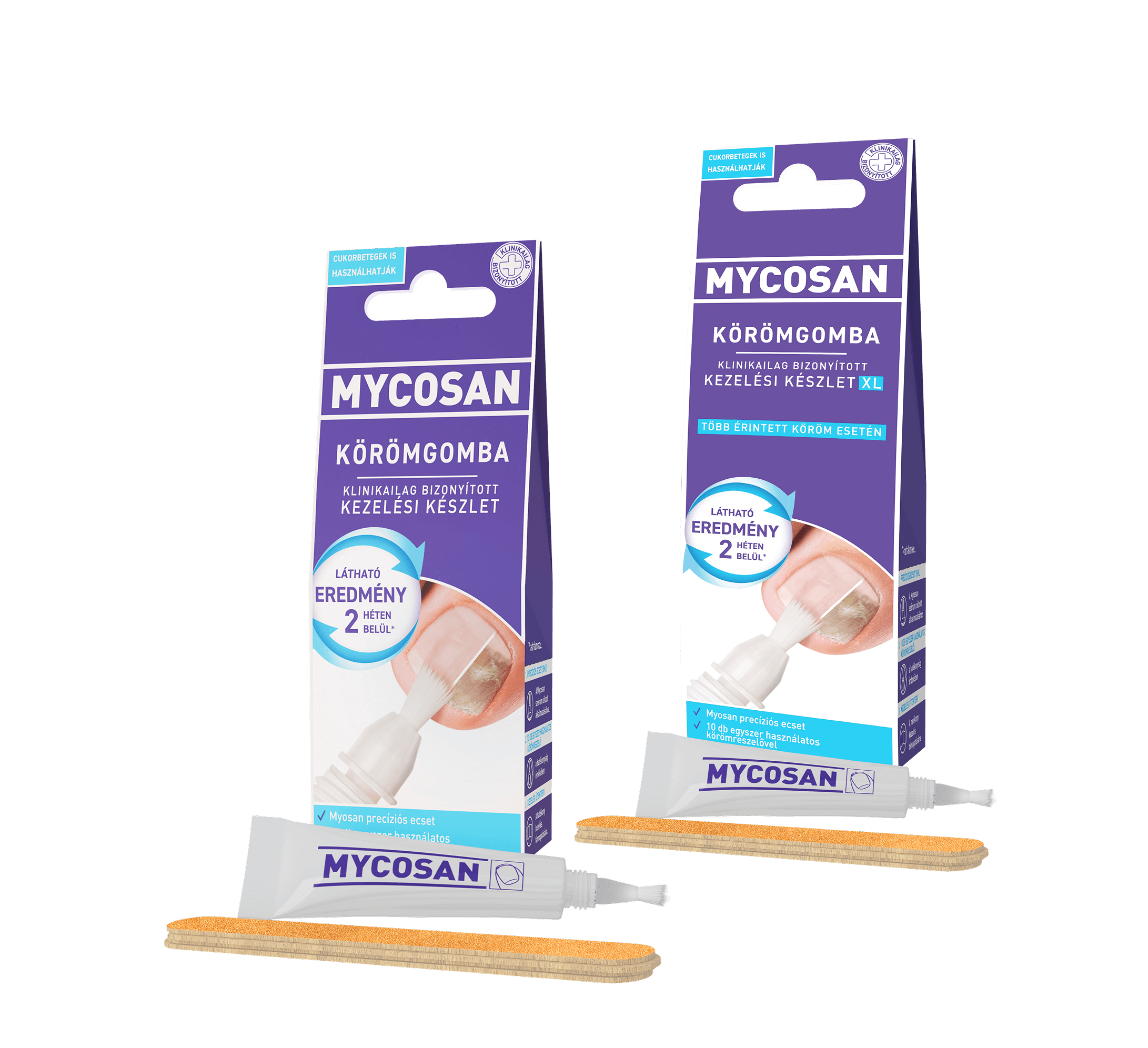 A Mycosan ecsetelő készlet kezeli és megakadályozza a körmök gombásodását. 5ml-es kiszerelés egy érintett köröm esetén, 10 ml-es kiszerelés több érintett köröm esetén.